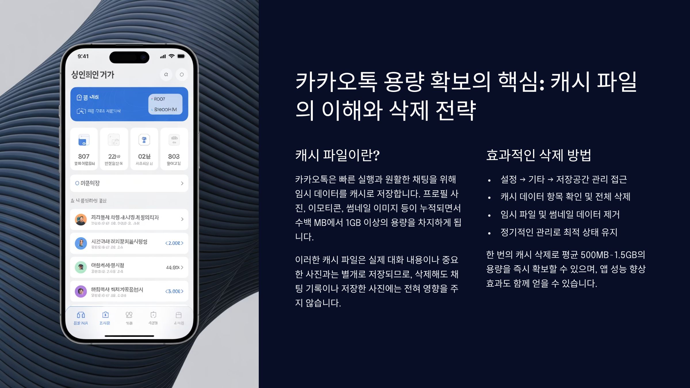 1. 카카오톡 용량 확보의 핵심: 캐시 파일의 이해와 삭제 전략 📝